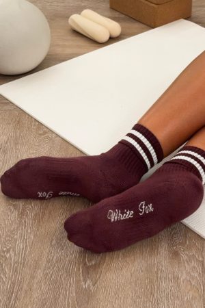 Your hot girl walk outfit isn’t complete without the Grounded Socks in Merlot/Cream! These cushioned crew socks feature embroidered WF Logo with contrast colour detailing and ribbed ankle cuffs and arch band.