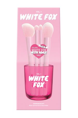 Your go-to for flawless make up-application. The GRWM brush set includes a powder brush. blusher brush. eyeshadow blender and packing eyeshadow brush. Complete with a cute White Fox glass brush holder. elevate your bathroom aesthetic and make up routine with this must-have set.