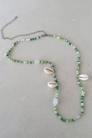 Elevated you bikini sets with the Hanalei Body Chain in Green/Gold! Features beading and shell detailing with an adjustable clasp for the perfect fit. Officially in love with this vibe!