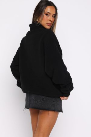Hard To Stay Focused Teddy Borg Zip Front Sweater BlackHard To Stay Focused Teddy Borg Zip Front Sweater Black