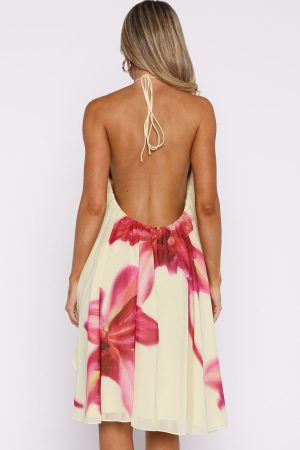 The Heartbreaker Status Mini Dress in Lemon Twist radiates effortless summer glamour! Featuring self-tie halter straps. a high neckline. relaxed silhouette that drapes beautifully. low back design and full lining for comfort. Style with sandals and chunky gold jewellery for the perfect summers night fit.