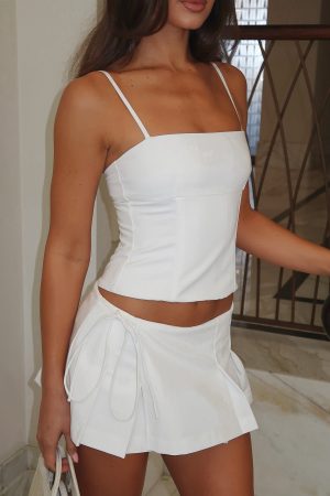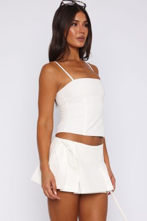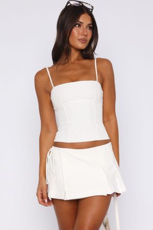 Take centre court in the Heaven On Earth Top in White! Features adjustable spaghetti straps. square neckline. boning down bodice for a structured waist and zipper with hook and eye closure. Ace your fit by pairing with the matching Heaven On Earth Mini Skort in White and kitten heels.