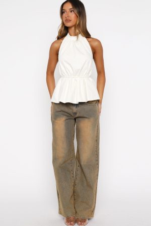 Living in a Pinterest board! The Hi Hunny Halter Top White is designed with thick self-tie halter straps. a high gathered neckline. backless and a wrap-around design that ties at the centre back. Fully lined for comfort. It’s your go-to for long lunches when styled with your fave denim. sandals. and sleek sunnies.