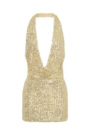 Shine in the spotlight with the Moonlit Vows Beaded Mini Dress in Cream! Featuring a fixed halter strap. a plunging neckline adorned with flower appliqué. and shimmering sequins and beads across the fabrication. Fully lined and backless for bold elegance. Style with a statement bag. sky‑high heels and sleek jewellery for your unforgettable night.