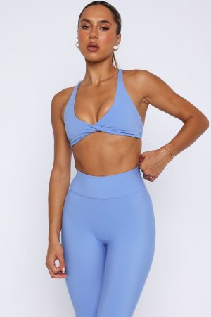 Elevate your gym-drobe with the High Definition Sports Bra in Blueberry. Features a plunge neckline. thick stretch straps. fitted design. criss-cross back design. lined. removable padding and custom patch detail. Pair with the matching Go Getter High Waisted Leggings Blueberry or Keep Up High Waisted Shorts 4 Blueberry!
