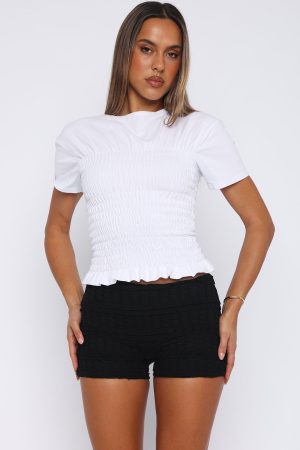 Dance through the night in the Honeymoon Lace Shorts Black! Features a low-rise fit. lace ruffle fabric design. lined. ultra booty short length and soft. stretch fabric for an easy pull over design. Style with a baby tee for a look we adore!