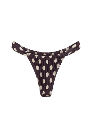 Channel full-on vacay vibes in the Huskisson Bottoms in Choc/Cream Polka Dot. These sleek bikini bottoms feature skinny side straps and a moveable ruched design that lets you adjust coverage from minimal to cheeky. Wear them high-rise or at hip level to create the illusion of longer legs and a perky silhouette. Pair with one of our matching Choc/Cream Polka Dot bikini tops for the ultimate holiday-ready look.
