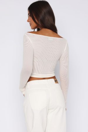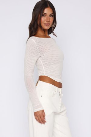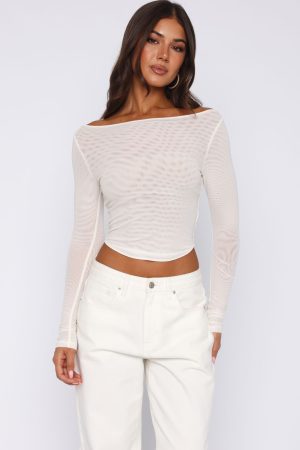 Meet the sexiest top you ever did see. introducing our Hypnotising Thoughts Top in Ivory! Features a jewel neckline. long sleeve and sheer fabrication making it your wardrobe staple as it can be styled casually or for more formal outings. Complete the fit with your favourite WF denim jeans and kitten heels or boots for colder days.