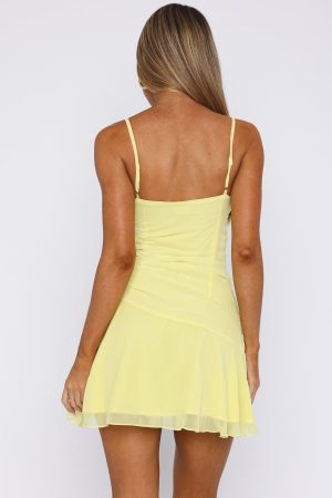Perfectly picked for you! The I Picked You Mini Dress in Lemon features thin adjustable straps. v-neckline. ruched fabrication on side and invisible zipper with hook and eye closure. Complete the fit by pairing with kittens heels and a floral clip for the most divine sunny day look.