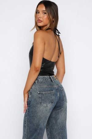 The I Think I’m Ready Pu Bodysuit in Black is the ultimate standout on your next girl night out! Features halter straps tied delicately at the neck. scoop neckline. low back. second skin fit and cheeky bottom coverage with hook and eye closure. Take your fit to the next level by pairing with your fav White Fox denim jeans and kitten heel.