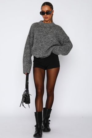Stay cute and comfortable in the Ice Queen Knit Sweater Smokey Grey. Featuring a high neckline. oversized fit. drop shoulder and unlined. super soft. cable knit material. We love this paired with your favourite White Fox Jeans and Snug Boots for a cosy look!