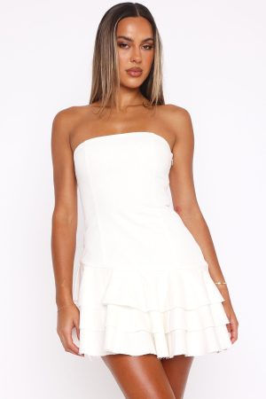 Wow the crowd in the I’ll Get Better Mini Dress Cream. Features a strapless design with gel grip on bust. fitted bodice. invisible side zipper and clasp closure. frill detailing with raw hem design. lined and mini length. Style with thong heels and a mini shoulder bag- we are obsessed!