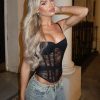Featuring thin. adjustable shoulder straps. a square neckline. built in bralette with bust underwire. boning in bodice. cropped length. back zipper and clasp closure. and thick internal elastic band with hook closure for a cinched fit. Complete the look with low rise jeans and pointed toe heels!