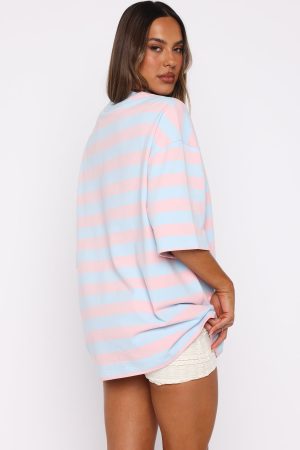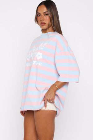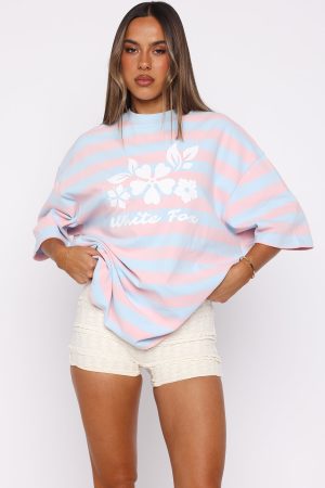 Cosy up in the countryside with the In The Valley Oversized Tee in Blue/Pink Stripe! Features a relaxed. oversized silhouette that features a classic crew neckline. softly slouched shoulders. and short sleeves. The eye-catching printed floral motif paired with White Fox text gives it charming appeal. while the ultra-soft. high-stretch knit ensures maximum comfort. Pair with your fav denim jeans. sandals and sunnies for a cutesy weekend fit!