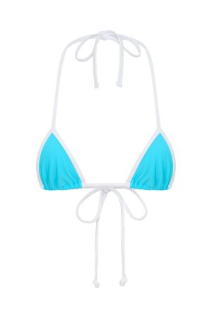 The more itty bitty the better! The Inka Micro Bikini Top in Blue/White features self tie halter straps. minimal triangle design. adjustable bust coverage with drawstring self back ties and contrast colour hemline. Complete the look with the matching Bottoms in Paradise Blue/White.