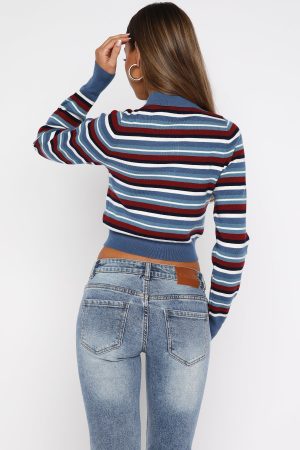 Join the cardi club in the cosy Inner Smile Knit Cardigan in Skyline Borders.This cropped. fitted cardigan brings comfort with flair. featuring a collared neckline. long sleeves with ribbed cuffs. and a snug ribbed hem. all in a high-stretch knit made to move. Style it effortlessly with your fave denim. colorful sneakers. and sunnies for the ultimate weekend look.