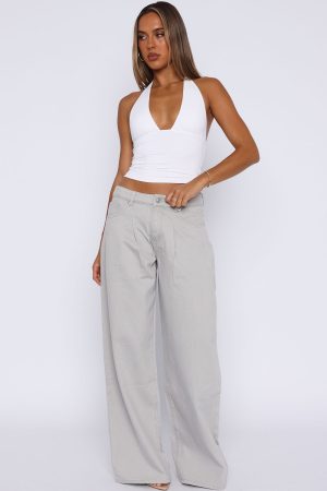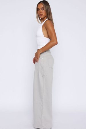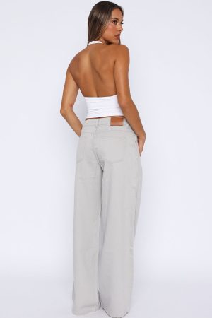 We can’t get enough of the Iris Low Rise Wide Leg Jeans in Light Grey! These low-rise jeans feature zip and button closure. belt loops. wide leg design and 5 pocket design. We love this paired with a cute crop and sneakers for the ultimate IT girl fit!