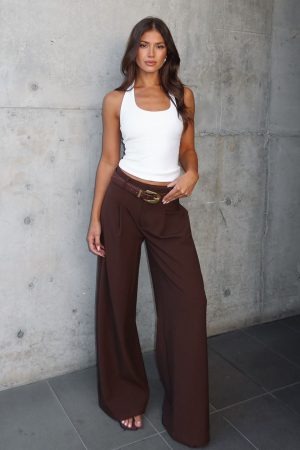 The It’s Now Or Never Pants Chocolate are the perfect blend of simple and chic! Features a hook and bar closure with front zipper. belt loops. faux back pockets and pleats front and back for a structured look. Pair with a simple tank and kitten heels for the perfect casual long lunch fit!