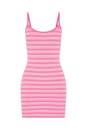 The most effortless yet adorable dress for summer! The I’ve Been Thinking Knit Mini Dress Pink Stripe Stripe features thin. adjustable straps. mini length. contrast colour way and stretch material for an easy slip on design.