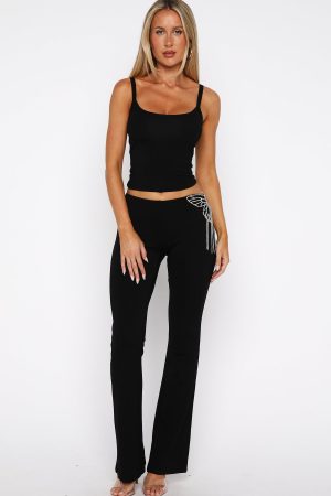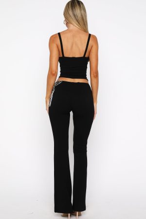When you’re in the city that never sleeps. step out in the Jar Of Hearts Pants in Black. Crafted from a high‑stretch unlined fabric. these pants feature a slim elasticated waistband. flared legs. and a glitzy diamanté butterfly with tassel detail. Pair with the Lost In Paris Bustier and let the pants do all the talking.