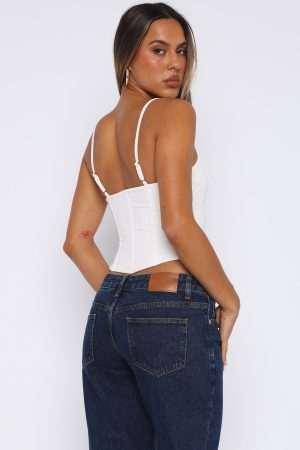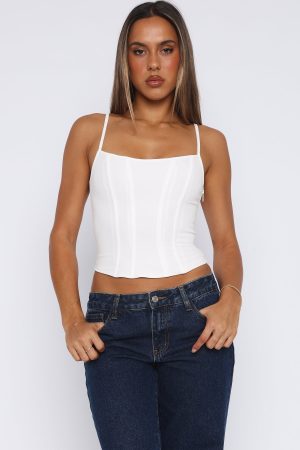 Make them jealous in the Jealousy Bustier in White! Features thin adjustable straps. scoop neckline and boning in bodice for a more structured design. Finish the look of by pairing with denim jeans and simplistic gold jewellery for a fit we are loving!