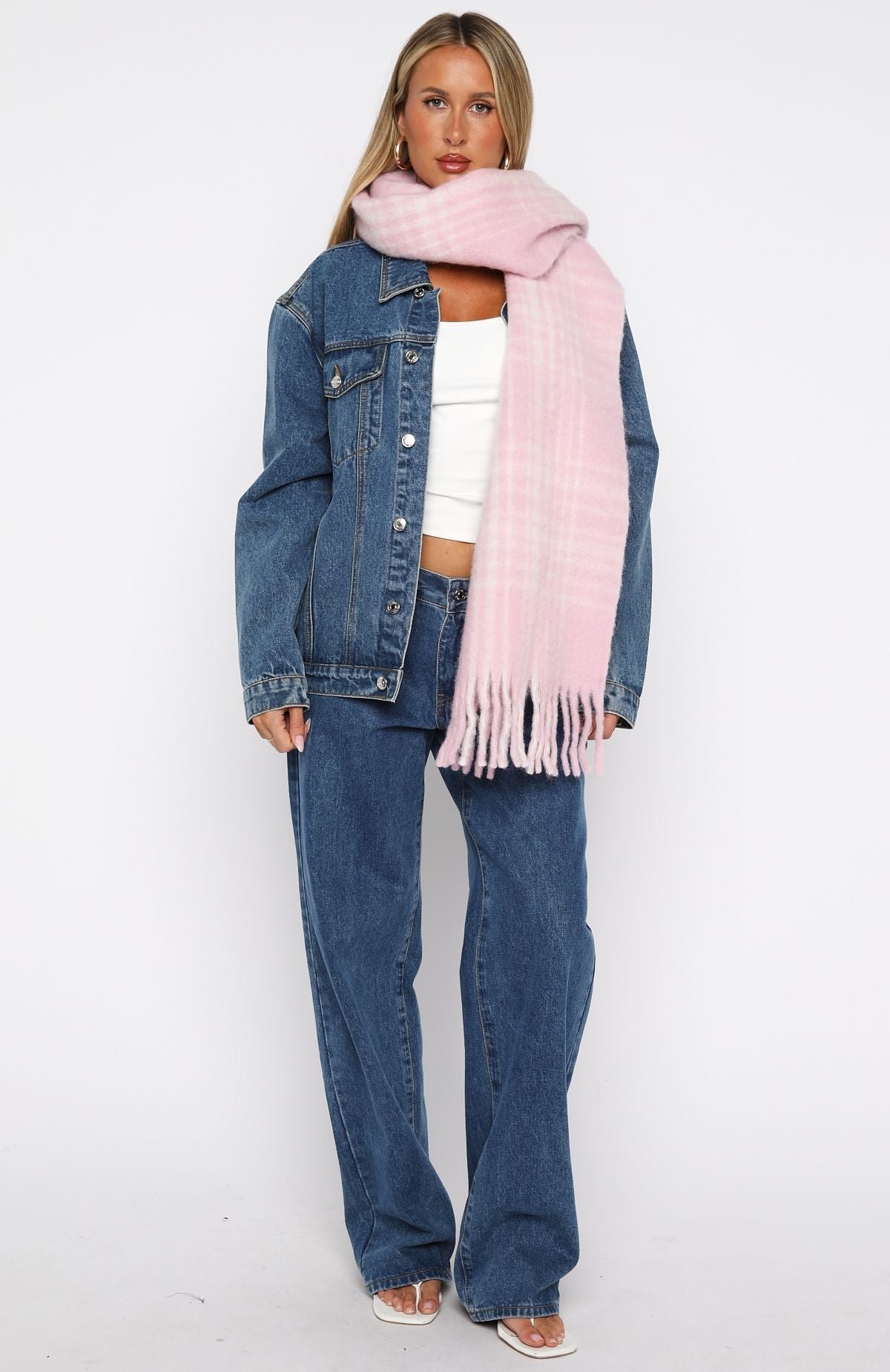 Finish off your winter look to perfection with the Joss Scarf in Pink Plaid! Crafted from a soft blend fabrication. it features a playful pink-plaid design. long length for versatile styling. and a tassel hem that adds subtle charm. Pair it with double-denim and boots to look effortlessly chic even on the chilliest days.
