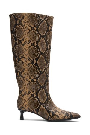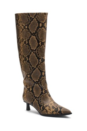 Make your dreams come true with the Juliette Knee High Boots in Snake! Featuring a statement kitten heel. an extended pointed toe-shape and an inner zip to easily slip on and go. Pair with your layering essentials to keep warm with these cooler months.
