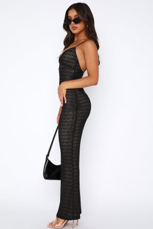 Keep your party wear fem and fresh with the Just Dance Maxi Dress Black. Featuring thin adjustable straps. backless design. and semi sheer. lined. mesh fabric. We love this paired with clear mules and gold accessories for a luxe look!