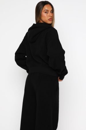 Just For Now Fleece Boxy Zip Front Hoodie BlackJust For Now Fleece Boxy Zip Front Hoodie Black