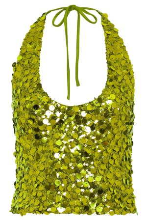 Meet our dreamiest new piece. the Just Over You Sequin Halter Top in Kiwi! Features halter neck self tie straps. scoop neckline. semi-cropped. backless and zipper with hook and eye closure. Complete the look xx