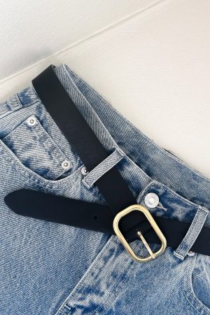 The Kai Belt Black features PU fabrication and fitted with an oval. gold plated hardware buckle. Style with your go-to pair and jeans for a chic and effortless look!