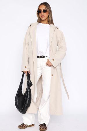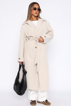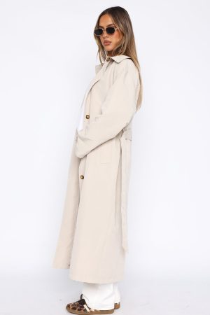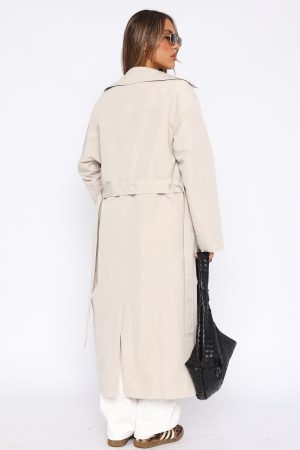 Upgrade your outerwear wardrobe with the Keep A Secret Tench Coat Dove. Featuring an oversized fit. wide collar. front button closure. belt loops with detachable belt. front pockets and lined fabric. We love this trench coat worn over any outfit to add a stylish twist!