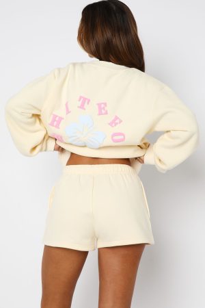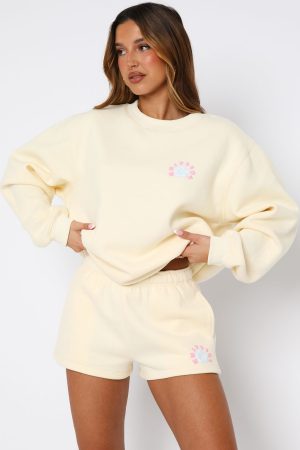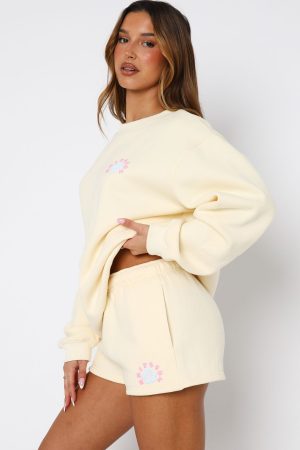 Keep your weekend casual with the Keep Blooming Lounge Shorts in Lemon. Features a loose relaxed fit with an elasticated waistband. side pockets. soft fleece fabric for extra comfort and puff printed logo front side. You can pair this with the matching Keep Blooming Oversized Sweater Lemon for cute and casual look!