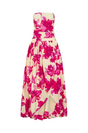 Tags: buystructure:fashion, clothing, collections:wedding-guest-26, colour:yellow, discountable, discountable_uk, discountable_us, Division:Fashion, dresses, end-use:evening, fabric-type:60-cotton-35-nylon-5-spandex, fabric:cotton, feed-cl0-newarrivals, feed-cl2-fullpriceau, feed-cl2-fullpriceuk, feed-cl2-fullpriceus, formal-dresses, length:strapless, maxi-dresses, New Arrivals, new_arrivals_au, new_arrivals_uk, new_arrivals_us, pattern:print, recently_added_2026-02-05, season:summer, size:l, size:m, size:s, size:xl, size:xs, size:xxs, sizeguide:clothes, strapless-dresses, subcat:maxi-dresses, subcategory:Formal Dresses, subcategory:Maxi Dresses, Subcategory:Strapless Dresses, tone:Siena Bloom, tone:Yellow, wedding guest