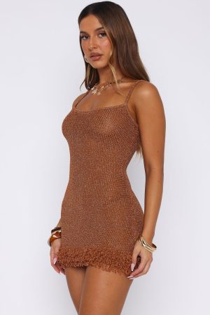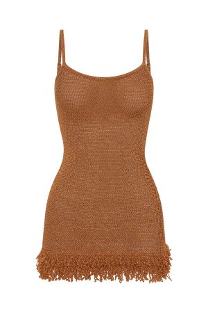 Go from beach to bar in the Keeping Me Awake Knit Mini Dress Orange. Features thin adjustable straps. square neckline. unlined. sheer. mini length. stretch material for an easy slip on design and frayed hem detailing. Style with kitten heels and a statement necklace for a look that’s sure to turn heads!