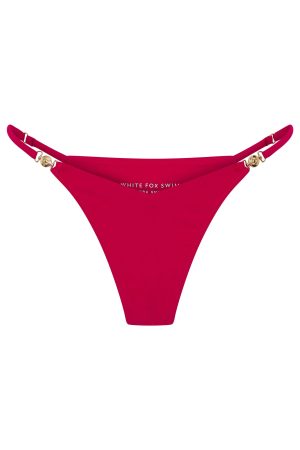 See you soon rocking the Kellis Bikini Bottoms in Cherry Red. They feature thin adjustable side straps. chic gold hardware detailing at the front sides. and cheeky coverage. Style them with the matching Cherry Red bikini top for a complete look.
