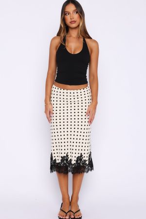 Knew It's You Midi Skirt Off White/Black Polka DotKnew It’s You Midi Skirt Off White/Black Polka Dot