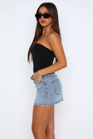 Nail that weekend fit’ brief in the Know It All Low Rise Denim Mini Skirt Mid Blue. Features a button closure and zipper. mid-waisted fit. 5 pocket design and denim fabric. Complete the look with clear heels and you’ll be the centre of attention. Layer with a blazer or keep is simple with a tank top and mini bag!