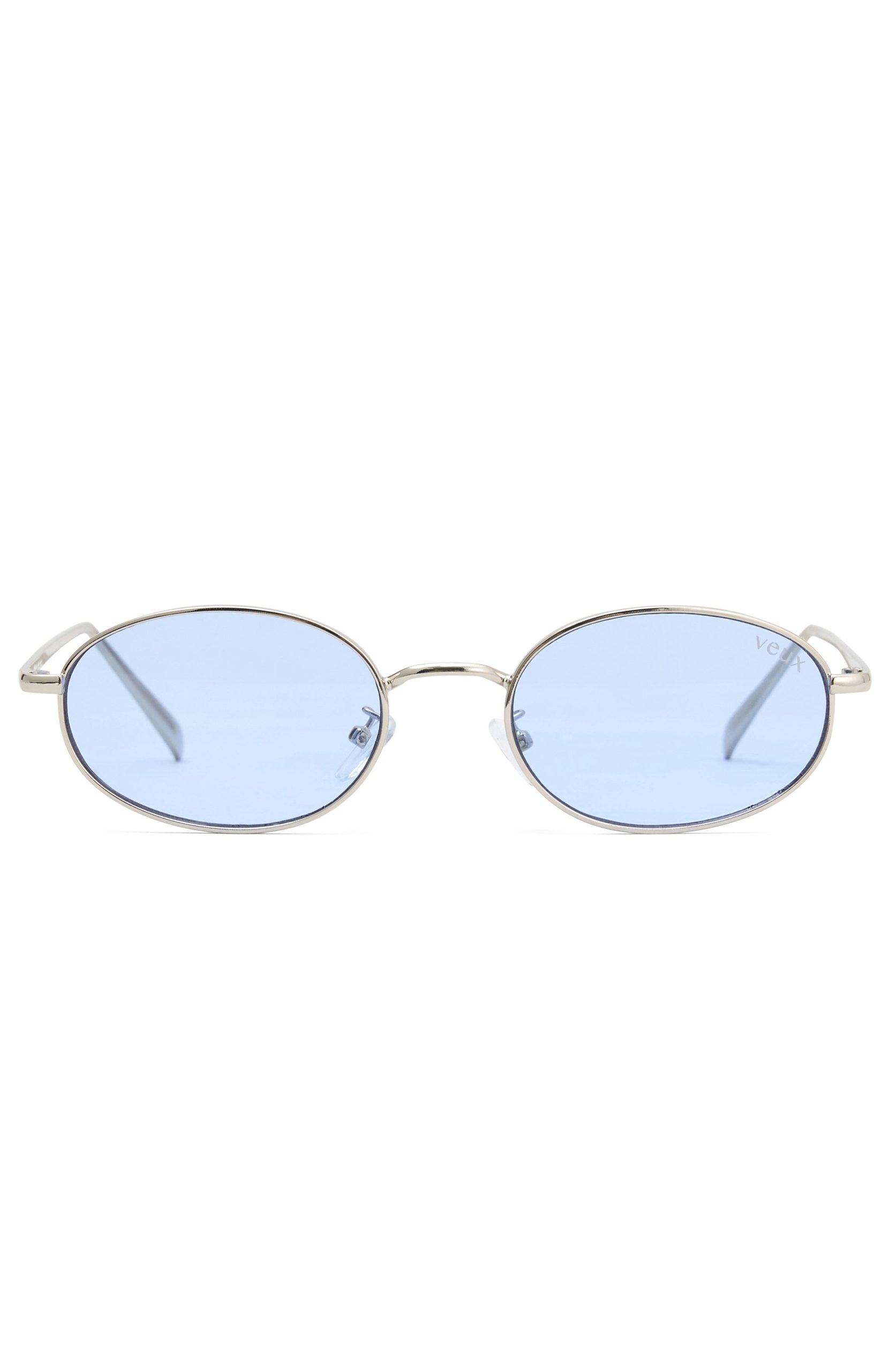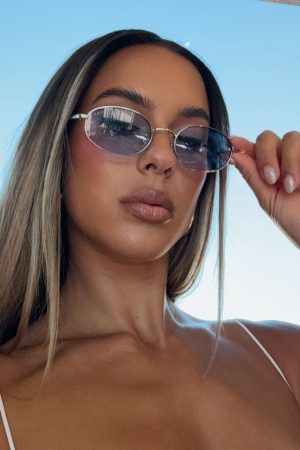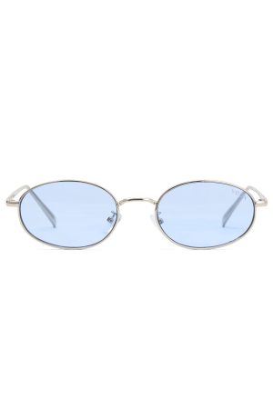 Nail your summer look in the Kora Sunglasses Silver/Blue. Features a chic. rounded frame with tinted lenses.