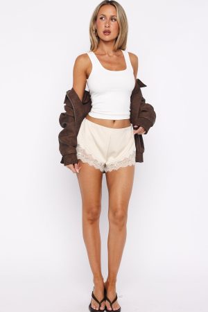 Last Petal Falls Lace Trim Shorts Cream