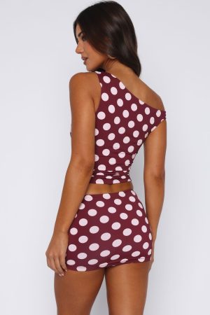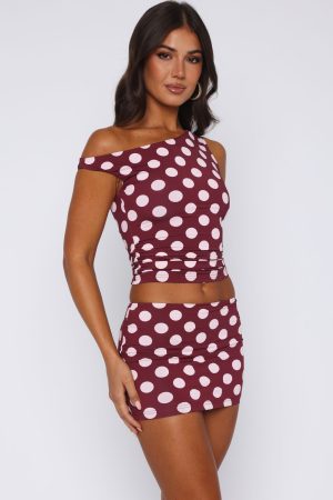 Bring the heat to your new season wardrobe with the Late Nights Mini Skirt in Burgundy Polka Dot This mini skirt is low-waisted and features stretch fabric for an easy slip on design. We love this styled with the matching Stay With You Top Burgundy Polka Dot and sandals for a fire look!
