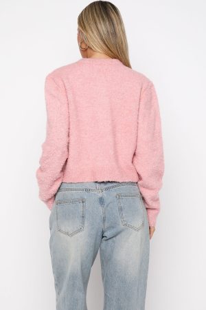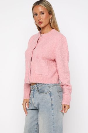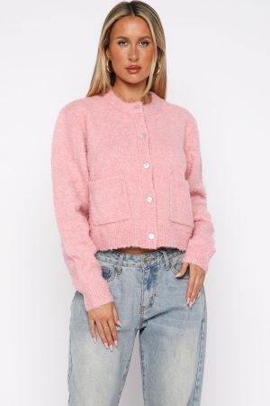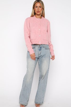 Wrapped in warmth and love. The Layer Of Love Knit Cardigan in Dusty Pink is your perfect cozy companion. It features a crew neckline. slouched shoulders. and long sleeves with subtle ribbed cuffs for a relaxed fit. The button-down front and functional pockets add both style and practicality. while the high-stretch fabrication ensures comfort. Complete the look low rise jeans and gold accessories for a look we love!