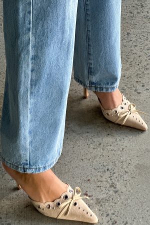 Get the vintage chic look this season with the Leina Heels Cream. Featuring eyelet detailing. gold plated studs and a dainty bow on top. this black suede vintage pump will ensure all eyes on you.