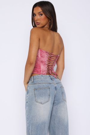 What’s not to love about the Let It Go Strapless Bustier Fuchsia Orchid! This bustier is a strapless style with grip tape. straight neckline. boning in bodice. lace-up back design. lined fabric and gorgeous printed fabric. Pair with a low rise jean and simple accessories for a stand out look.