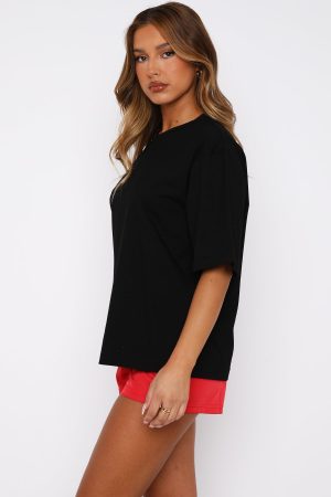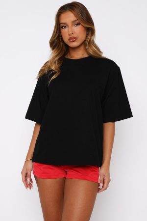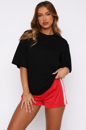 Off-duty has never looked so chic! The Let It Out Oversized Tee in Black features an oversized fit with a high scooped neckline and slouch shoulders. We love this paired with bike shorts and sneakers for the perfect weekend outfit!