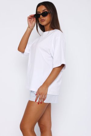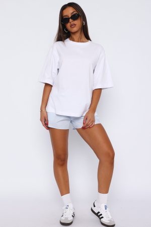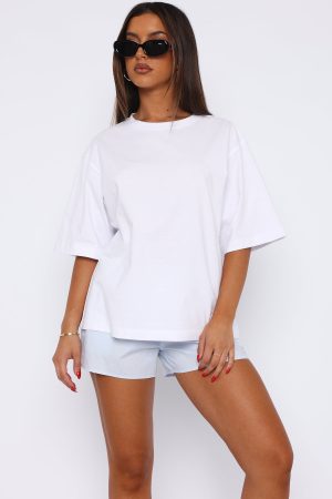 Off-duty has never looked so chic! The Let It Out Oversized Tee in White features an oversized fit with a high scooped neckline and slouch shoulders. We love this paired with bike shorts and sneakers for the perfect weekend outfit!