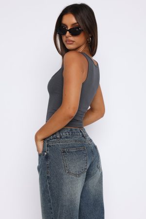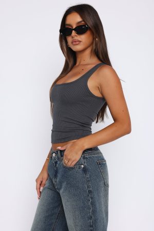 No need to procrastinate picking an outfit when the Let Me Adore You Tank Top Charcoal is a wardrobe staple! This top features a low scoop neckline. thick straps. unlined fabric and ultra soft. stretch ribbed fabric. Pair with a mini skirt and flats for an easy summer fit!