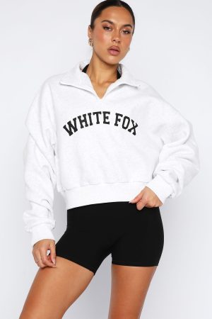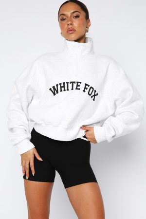The Let The Bells Ring Cropped Quarter Zip Sweater Grey Marle features a collard neckline. quarter front zip closure. cropped length. fleece lined for extra comfort. ribbed cuffs and hem and centre front logo detailing. Team with any of our active shorts or tights in black get ready to make moves!