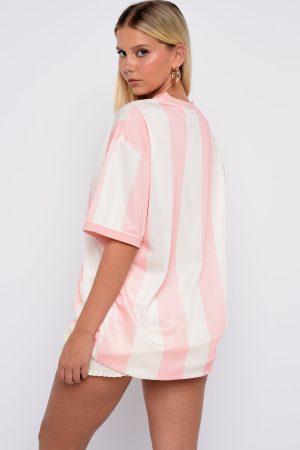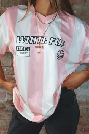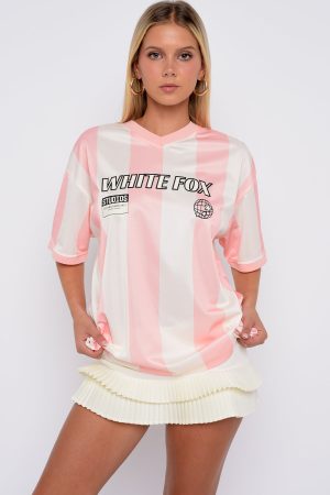 Slip into the Let’s Just Leave Oversized Jersey in Pink/Cream and instantly elevate your chill-but-cool style. This laid-back jersey features an oversized fit. soft V‑neckline. slouched shoulders. short sleeves and lightweight fabrication for effortless comfort. The front showcases bold White Fox text and printed graphics. Pair it with denim jeans and some chunky gold jewellery to complete a cool. curated look that’s sure to turn heads.