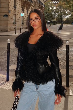 Leather weather! The Level Playing Field Pu Jacket Black features a luxurious faux fur hemline. cuffs. and collar. adding a touch of sophistication to its relaxed silhouette. Designed with long sleeves and a fully lined interior. it offers both comfort and style. Pair with your go-to denim jeans. statement heels and bag for the perfect fit to tour the Louvre Museum.